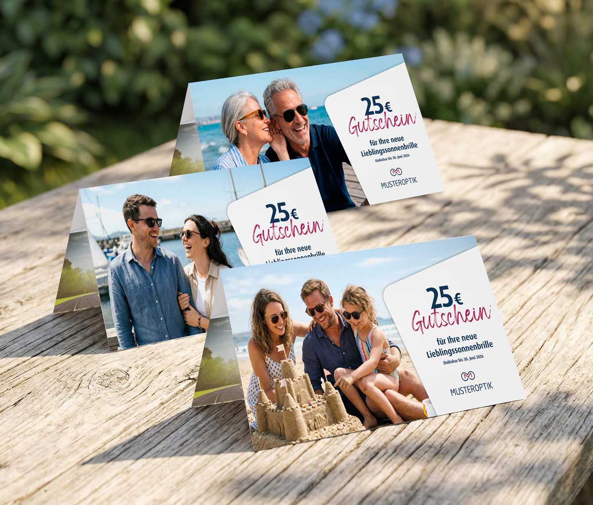 Drei Motive für drei Zielgruppen. Ihr Logo, Ihr Angebot, Ihr Gutschein. Alles fertig gestaltet und versandbereit.