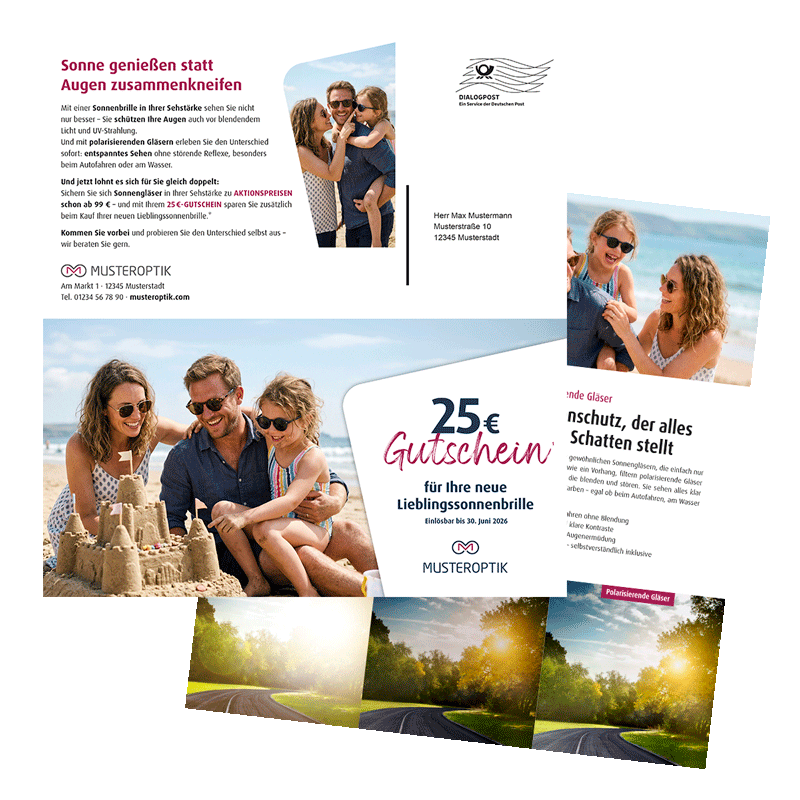 Der Sonnenbrillen-Selfmailer unterstützt Ihre Kundenbindung – ganz ohne großen Aufwand für Sie.