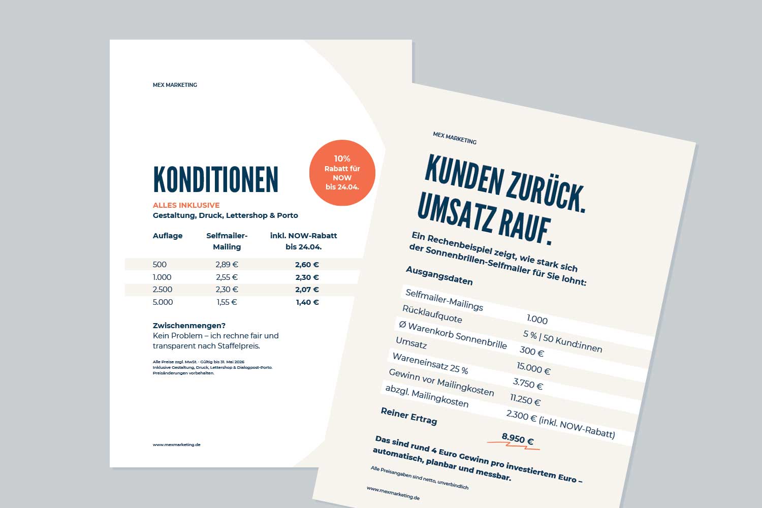 1Ein Rechenbeispiel zeigt, wie stark sich der Sonnenbrillen-Selfmailer lohnt: